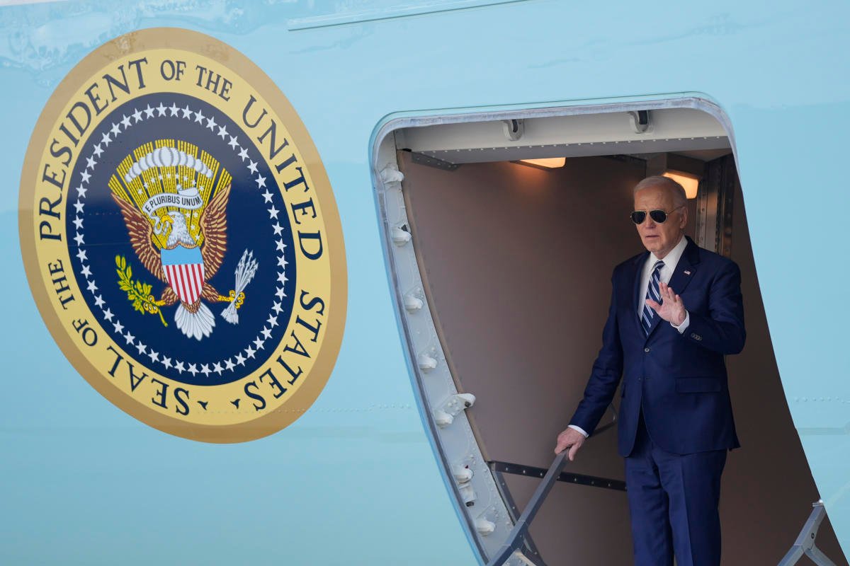 President Joe Biden arrives at John F. Kennedy International Airport, Thursday, April 25, 2024, in New York. (AP Photo/Evan Vucci)President Joe Biden arrives at John F. Kennedy International Airport, Thursday, April 25, 2024, in New York. (AP Photo/Evan Vucci)