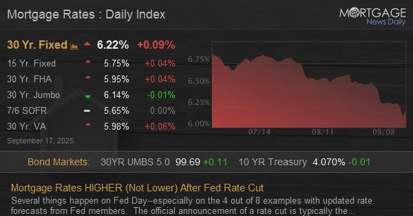 Several things happen on Fed Day–especially on the 4 out of 8 examples with updated rate forecasts from Fed members. The official announcement of a rate cut is typically the least important aspect. In fact, it is usually entirely unimportant in terms of its impact on mortgage rates.