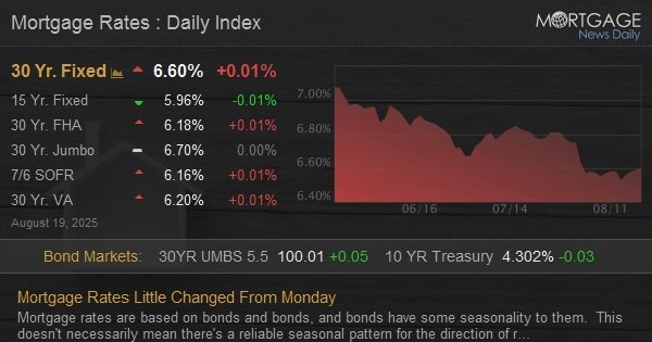 Mortgage rates are based on bonds and bonds, and bonds have some seasonality to them. This doesn’t necessarily mean there’s a reliable seasonal pattern for the direction of rate movement. Rather, it means that several weeks in August tend to be fairly forgettable in terms of excitement, volatility, and methodical movement.
